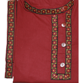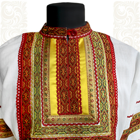 Косоворотка Николай, габардин, красный с желтым