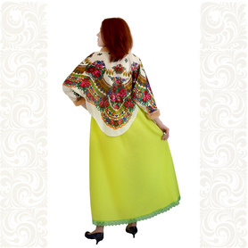 - украшенная искусственным мехом по манжетам и по горловине накидка, выполнена из платочной ткани;