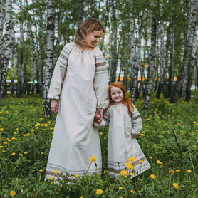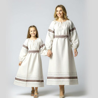 Платье «Дмитра» отрезное по талии, рукав реглан, юбка - почти солнце, длиной немного ниже колена. С поясом. Важно отметить, что декор платья выдержан в славянском стиле, но в целом, платье «Дмитра» - современное прочтение народных традиций. Как правило, дети и подростки с удовольствием выбирают его. Романтичное, удобное и нарядное, оно дарит ощущение радости и праздника. Замечательно подходит для тематических праздников в детских учебных заведениях, по фасону и яркости цветов отлично подойдет для танцевальных коллективов. Платье выполнено из немнущейся, матовой ткани "габардин" символичных для славян цветов ( красного, синего, зеленого, бордового).