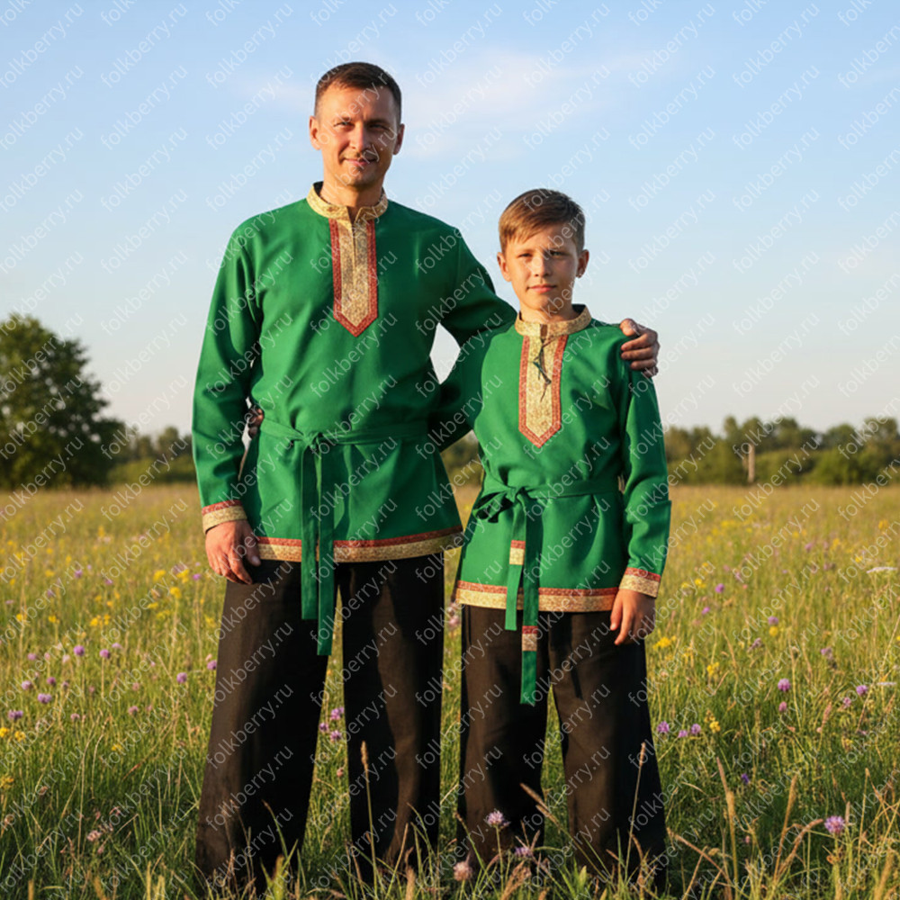 Рубаха Молодецкая, зеленый габардин