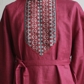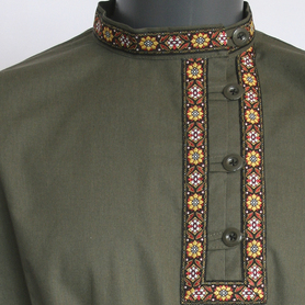 Рубаха Русский Стандарт сшита из плотного 100 % льна благородных цветов. Горловина украшена воротником-стойкой, посредине груди - планка с застежкой, рукав втачной с манжетами на пуговицах. Рубаха немного укороченная, без пояса. Благодаря фасону и плотной ткани, рубаха смотрится свежо и стильно с джинсами, и другими деталями современной одежды. Рубаха Русский Стандарт - прекрасно подойдет мужчинам для повседневной носки, а также будет выиграшно смотреться на праздничных мероприятиях.