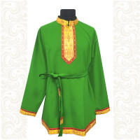 Рубаха "Василёк" выполнена из габардина белого оптического цвета. Декором косоворотки стали большие по размеру вставки из хлопка с цветочным рисунком в сине-голубом цвете и вьюн синего цвета. С Косоворотка без воротника-стойки удобна при надевании на верхнюю одежду (на зимних мероприятиях). Косоворотка "Василек" и сарафан с блузой "Гжель" подойдут для участников одного ансамбля.
