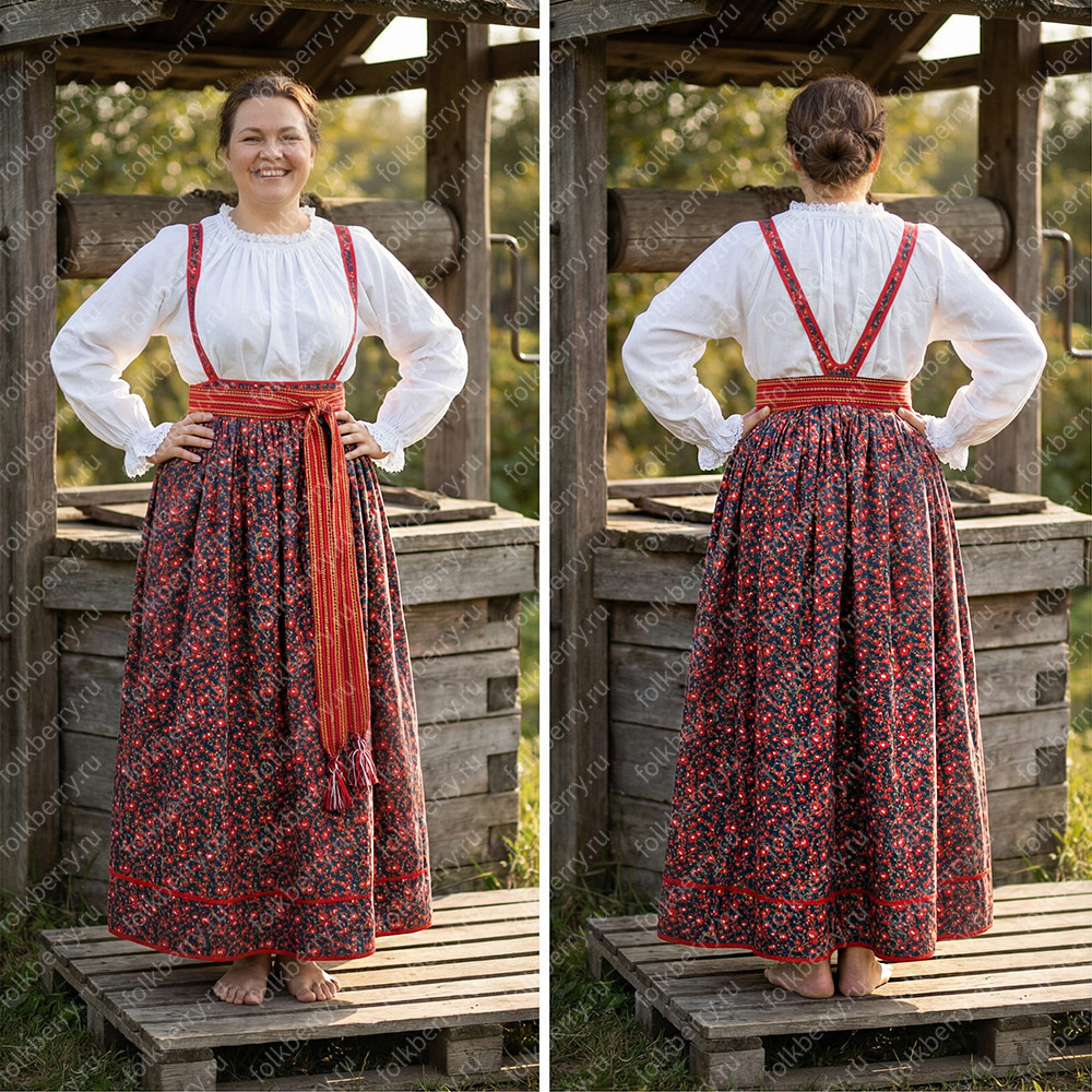 Этот ансамбль — идеальный выбор для тех, кто ценит исконную русскую культуру, естественную красоту натуральных тканей и стремится к гармонии в повседневной жизни.